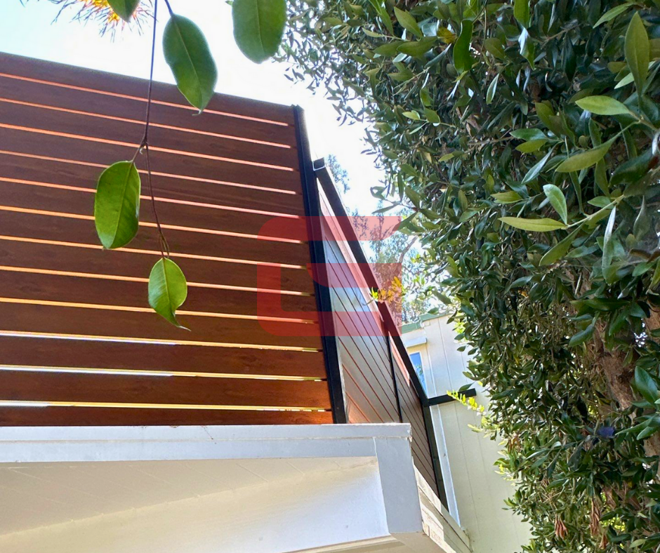 We removed it and installed a rust-free, termite-proof aluminum fence with a wood accent for a warm, modern look. Strong, clean lines. Low maintenance. Built to last.