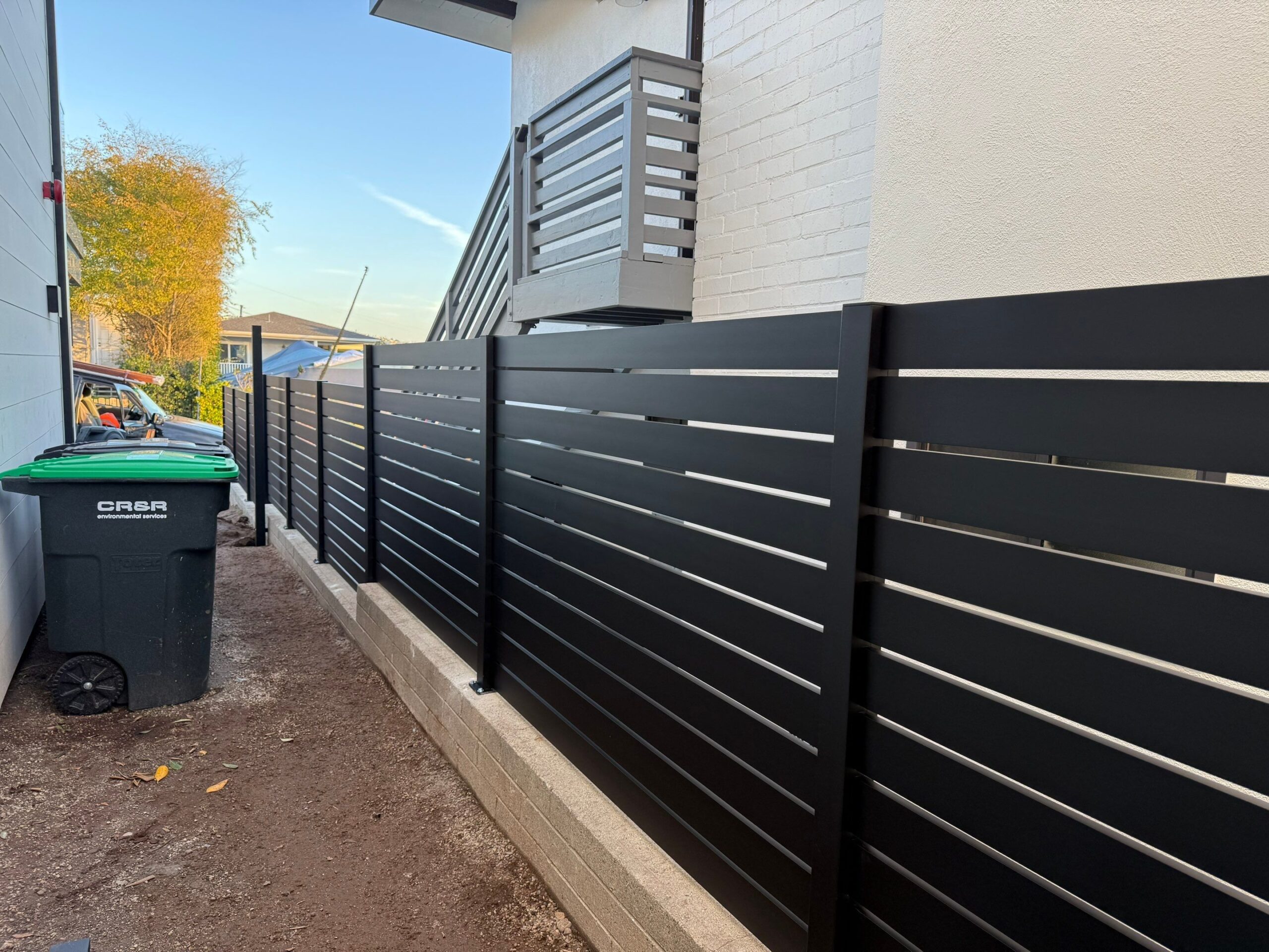Its modern horizontal slat design, slim 1/2″ gap, and reinforced C-Channel frame provide a sleek, durable, and semi-private fencing solution.