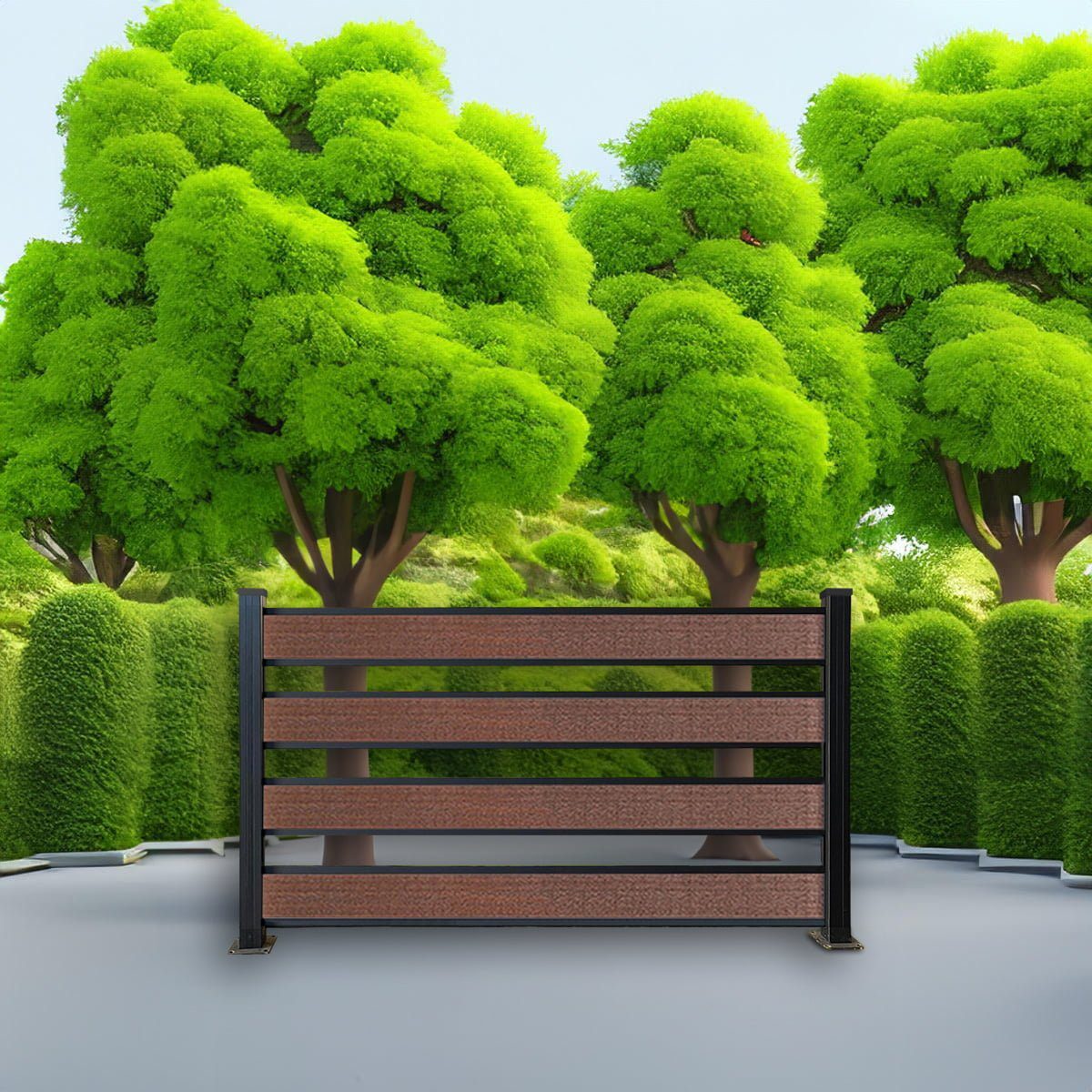 Our Greenwood composite fence utilizes a tongue and groove fence system, seamlessly combining the durability and aesthetics of composite fence boards with decorative aluminum posts and rails. With this fusion of materials, you can effortlessly transform your private oasis into a stunning work of art.